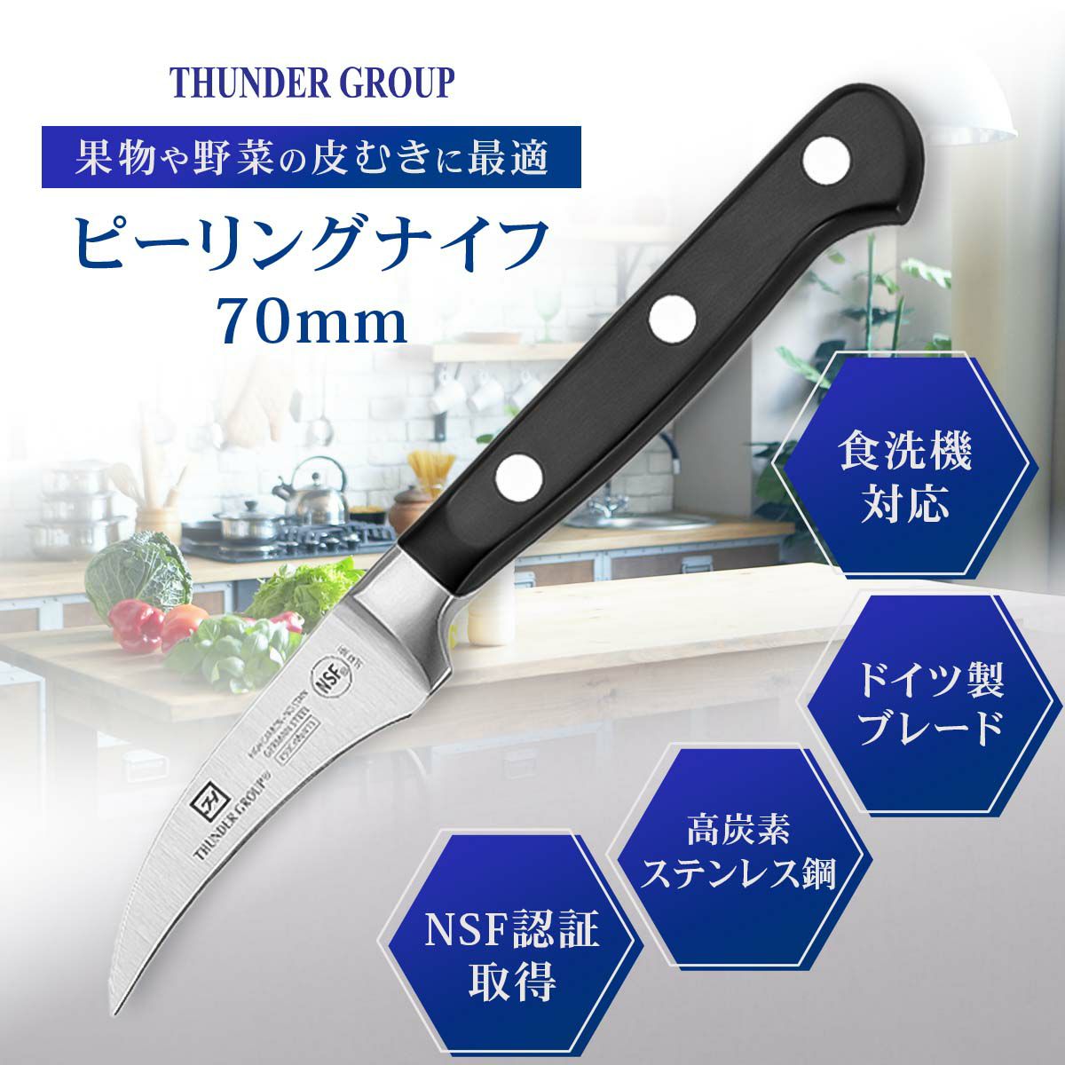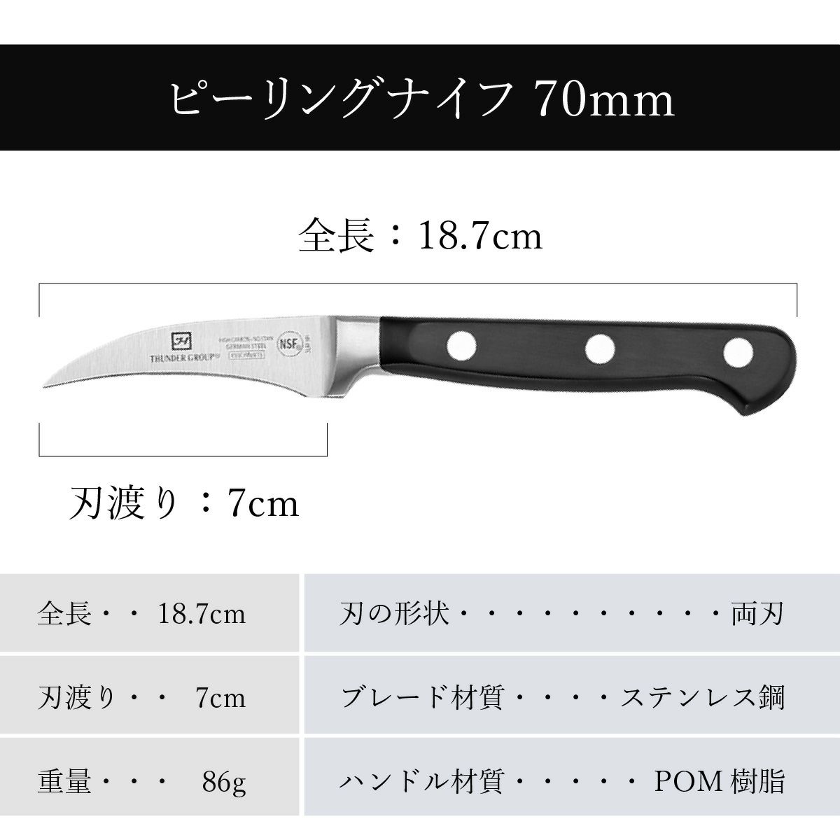 Thunder Group ピーリングナイフ 70mm 湾曲 皮むき 芽とり 食洗機対応 モリブデン バナジウム ステンレス鋼 両刃 業務用 SLKF301 / ピーリングナイフ 70mm