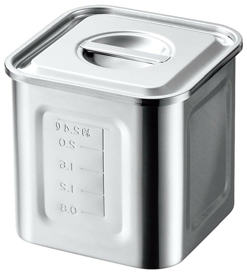 18-8 目盛付 角型キッチンポット 8cm 手無 業務用 1153000 【メーカー取寄せ】
