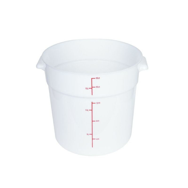 Thunder Group フードコンテナー 保存容器 17.03L 18QT 目盛り付き 丸型 本体 蓋なし 食品 食材 ポリカーボネート製 ホワイト PLRFT318PP / 17L