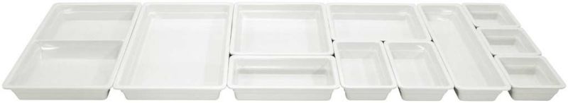 ●メラミン樹脂製のガストロノームパンは、表面硬度が高いためキズつきにくく耐久性に優れています。陶器とほとんど見分けがつきにくいほど表面のコーティングは美しく、熱伝導率が低いので料理が冷めにくく、熱い物を入れても手に熱さを感じさせません。軽くて丈夫なメラミンGNパンは美しさと機能性をそなえています。