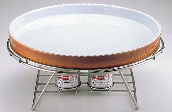 ●ロイヤルスタンドにオーブンウェアを載せるだけでビュッフェの主役に早変わり。特殊アルミ合金プレートの効果で料理をゆっくり温めます。ランプ台が取り外せますからコールド料理にもお使い頂けます。
