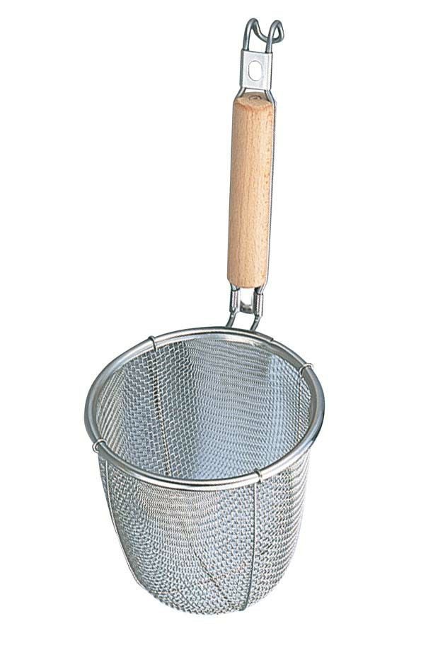 MI 18-8 白木柄 うどんテボ(8メッシュ)丸底 φ140 業務用 6383900 【メーカー取寄せ】
