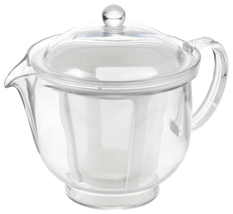 ●軽くて割れないプラスチック製ティーポット。網目の細かいポリエステルメッシュです。