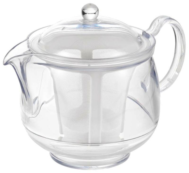 ●軽くて割れないプラスチック製ティーポット。網目の細かいポリエステルメッシュです。