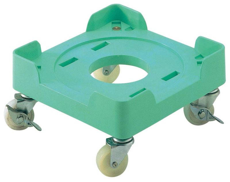 ●角型の一斗缶と丸型ペール缶をのせることのできるプラスチック製キャリー。