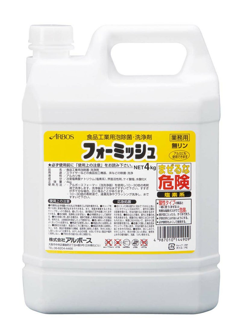 アルボース 食品工業用泡除菌・洗浄剤 フォーミッシュ 4kg 業務用 4702600 【メーカー取寄せ】