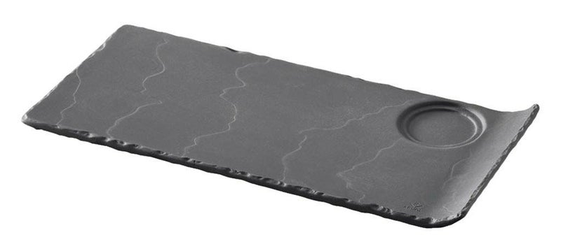 ●玄武岩(バサルト)のような見た目と形状の耐熱磁器製。マットなブラックカラーは、カラフルな前菜やデザートを引き立てるのはもちろん、シンプルにステーキやチーズを並べるだけでもOK