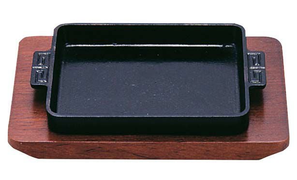 SN 鉄 ギョーザ皿 長角 木台付 17cm 業務用 7570000 【メーカー取寄せ】