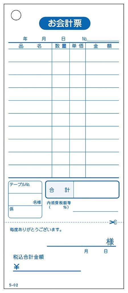 会計伝票 S-02(10冊入)単式ミシン入100枚 業務用 8595700 【メーカー取寄せ】