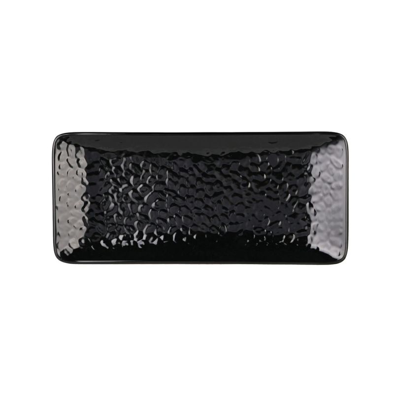 Thunder Group 長角皿 28.9×13cm 焼き物皿 焼き魚 長方形 メラミン食器 食洗機対応 割れにくい プラスチック 業務用 槌目 黒 ブラック 24110BK / ブラック
