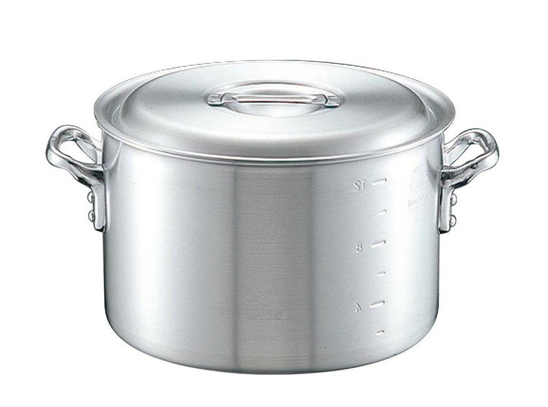●純度の高いAL1100-Pアルミ材を使用。フチ折り曲げ加工、プレス加工効果により歪みや変形が少なくどの部分を切っても板厚が均一で熱廻りが平均しているのでムラがありません。プロユースのハードな使用に適した製品です。フタがフラットなのでスタッキングが可能です。