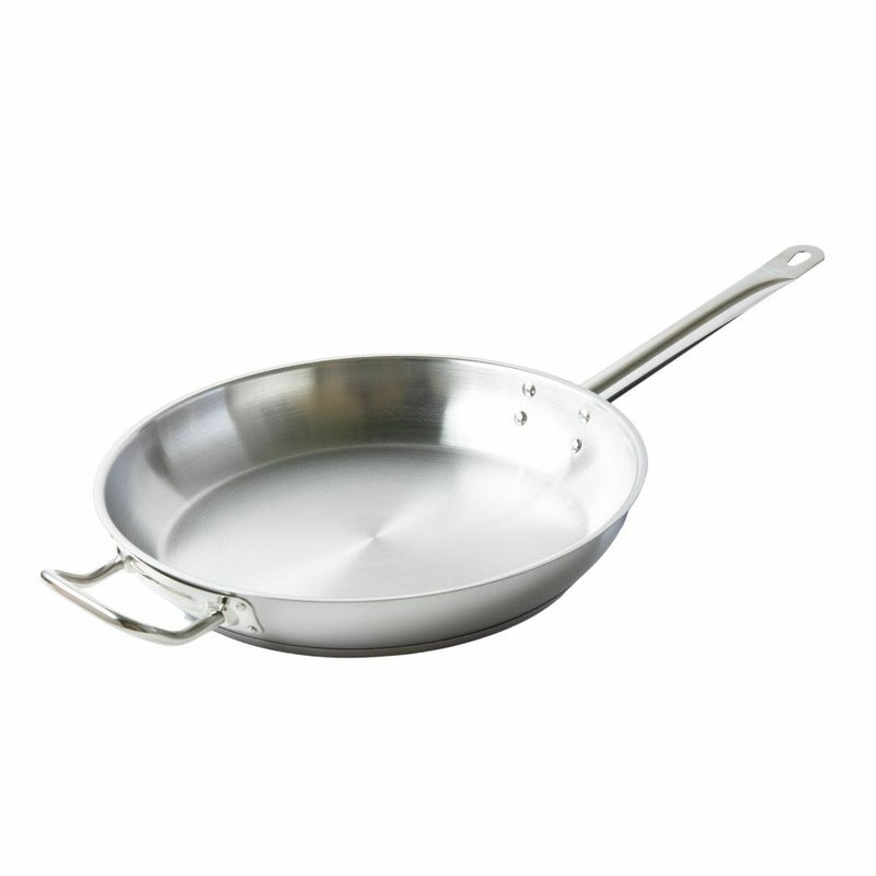 ステンレスは鉄製に比べて熱伝導性が低いため、底が厚く設計されたステンレスフライパンは、熱を均等に分散させ焦げ付きを防ぎます。食材を均一に加熱することで焼き色を付けたり甘みを引き出すなど美味しく仕上げることができます。また、保温性が高く料理が冷めにくいです。