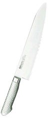 ●ハンドル部:18-8ステンレススチールモナカハンドル。ガラスビーズショット仕上げによる、手触りのソフト化、滑り防止。刃部とハンドル部の(溶接による)一体化で、雑菌等の付着防止など、従来の木ハンドルの衛生面での問題を克服しました。(手研本刃付)