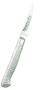 ●ハンドル部:18-8ステンレススチールモナカハンドル。ガラスビーズショット仕上げによる、手触りのソフト化、滑り防止。刃部とハンドル部の(溶接による)一体化で、雑菌等の付着防止など、従来の木ハンドルの衛生面での問題を克服しました。(手研本刃付)
