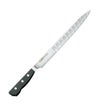 ●440Aを基本ベースとしたグレステン鋼は、何段階にもわたる特殊熱処理を行っています。耐蝕性、耐摩耗性、耐熱・耐寒性、靱性、硬度の安定性、切れ味に持続性など、品質を徹底追求して高度な機能を実現。従来の庖丁をあらゆる面でトータルに革新したプロの信頼に応える世界の銘品です。グレステンは一本一本専門の技術者が仕上げた本刃付けになっています。