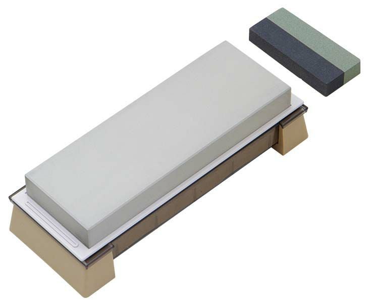 ●荒仕上げから超仕上まで。抗菌剤入りプラスチック研ぎ台がそのまま収納ケースになる。