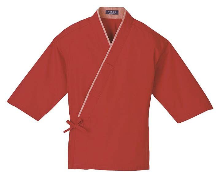 作務衣(男女兼用)KJ0060-3 朱色 L 業務用 3352080 【メーカー取寄せ】