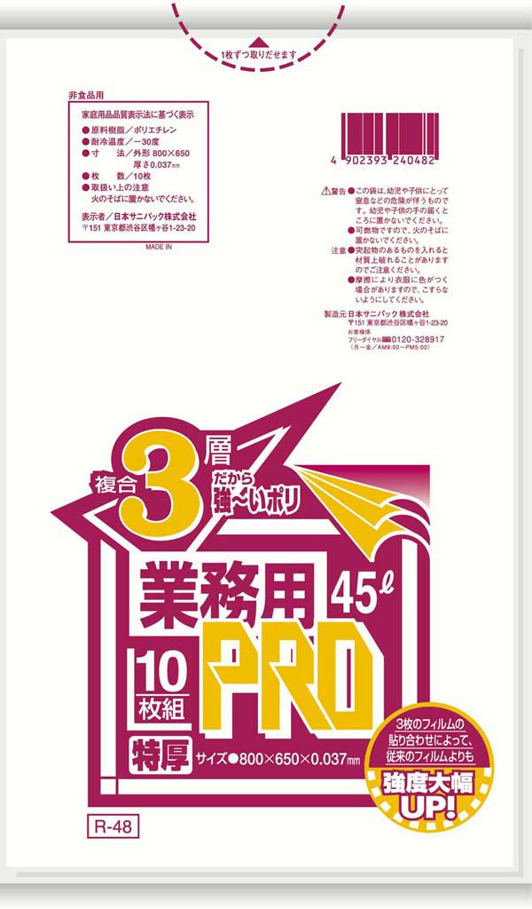 業務用PROゴミ袋 半透明 複合3層特厚 45L R-48F(300枚) 8540900 【メーカー取寄せ】