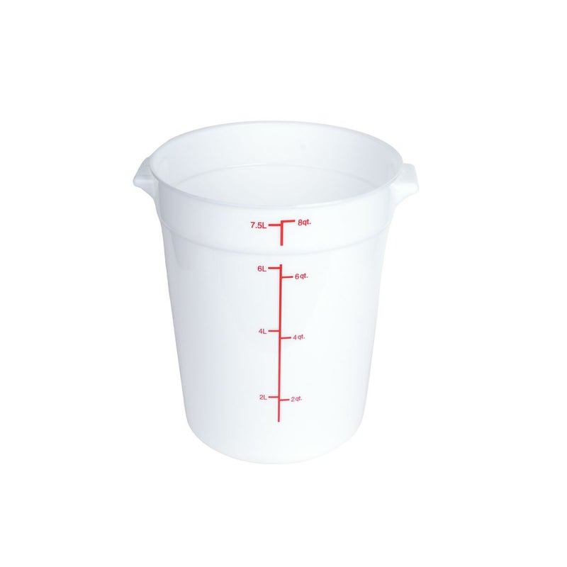 Thunder Group フードコンテナー 保存容器 7.57L 8QT 目盛り付き 丸型 本体 蓋なし 食品 食材 ポリカーボネート製 ホワイト PLRFT308PP / 7.5L